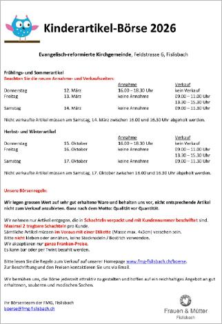 Bitte lesen Sie das vollständige Reglement vor jeder Börse genau durch: